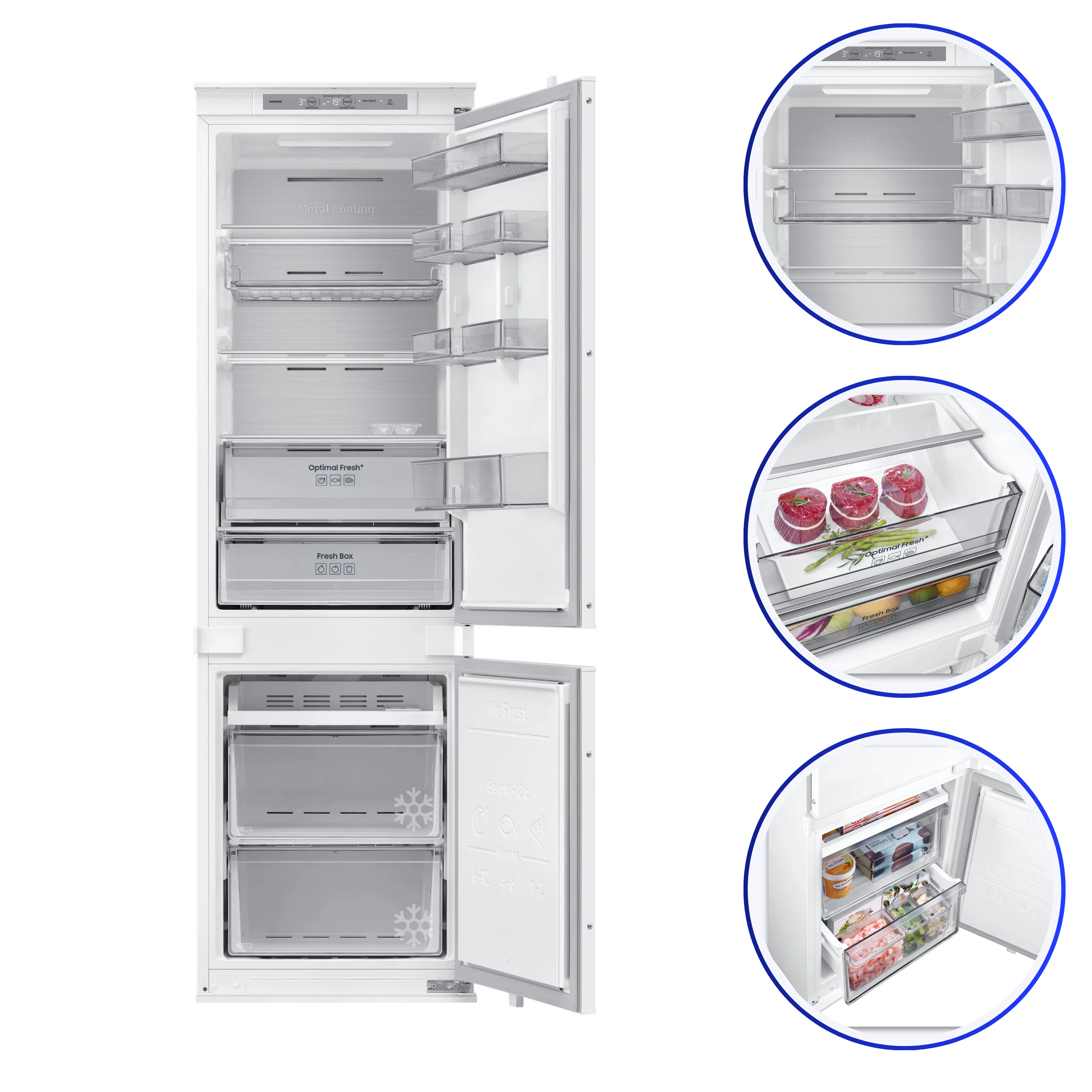 Urządzenie zaprojektowano z myślą o pełnej integracji z zabudową kuchenną – zawiasy ślizgowe, licowany front i stalowe wnętrze Metal Cooling gwarantują estetykę oraz trwałość.