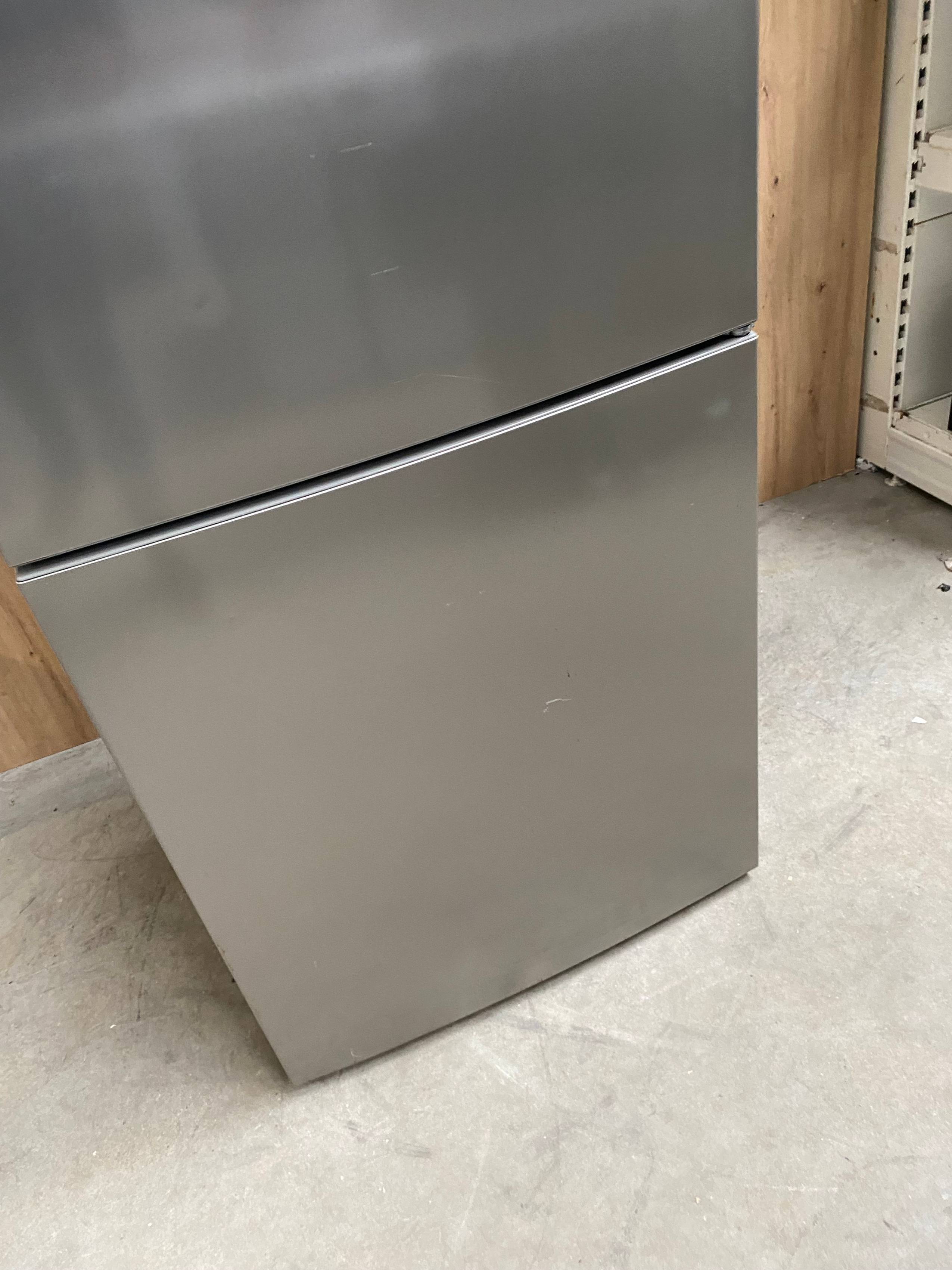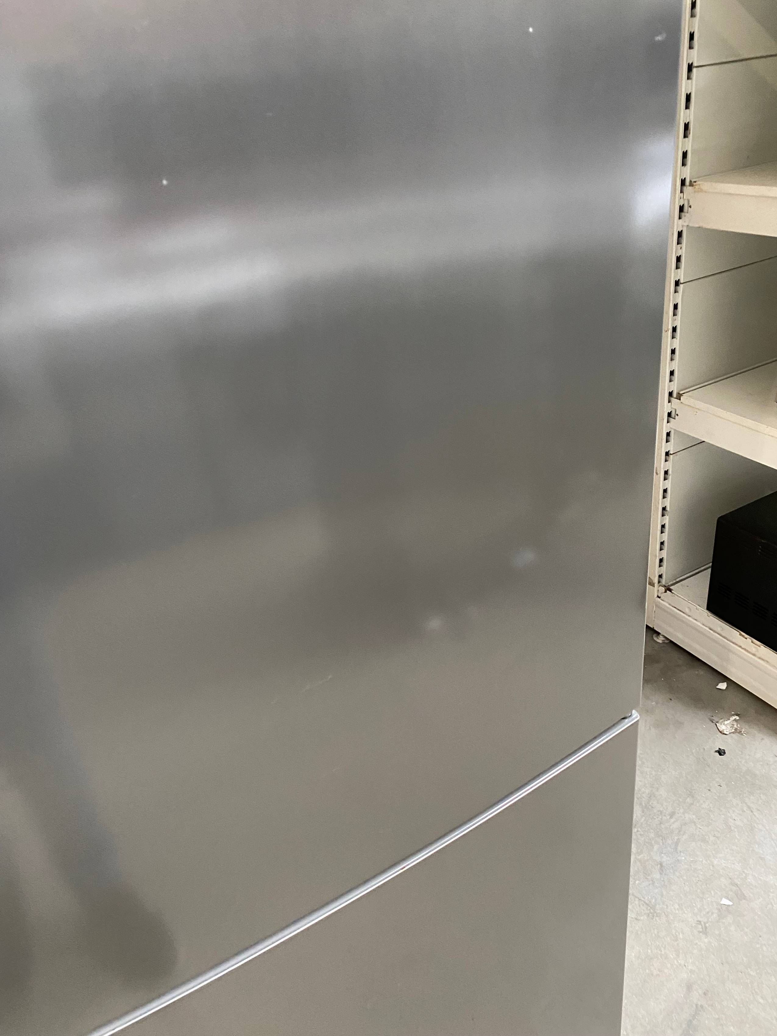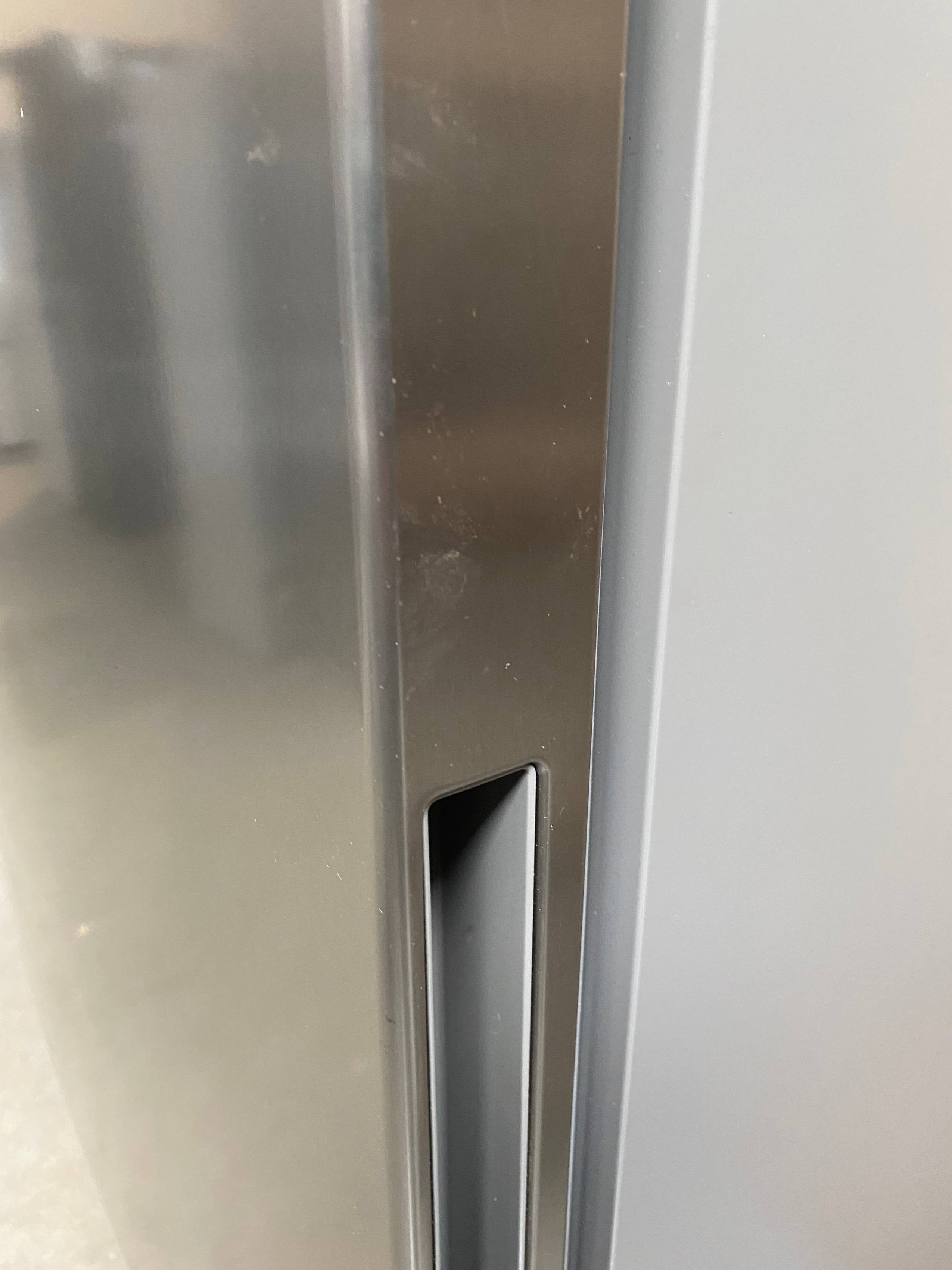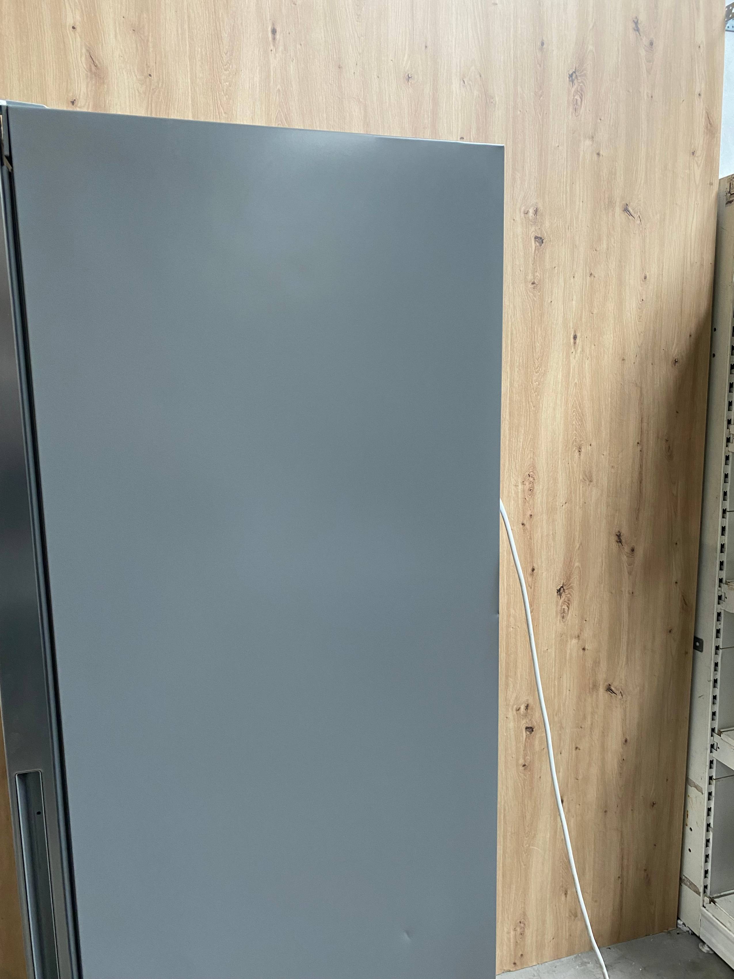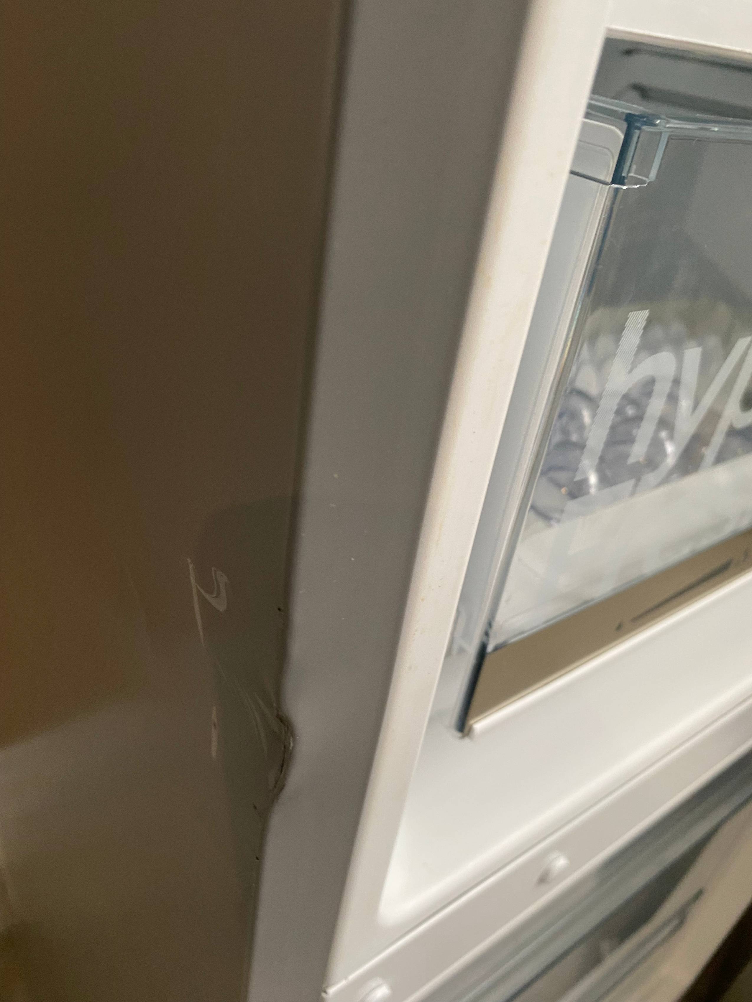 Defekty i uwagi: wgniecenia i zarysowania na bokach froncie, pęknięcie plastikowej osłonki półki, wgniecenie na lewym boku przy otwarciu drzwi