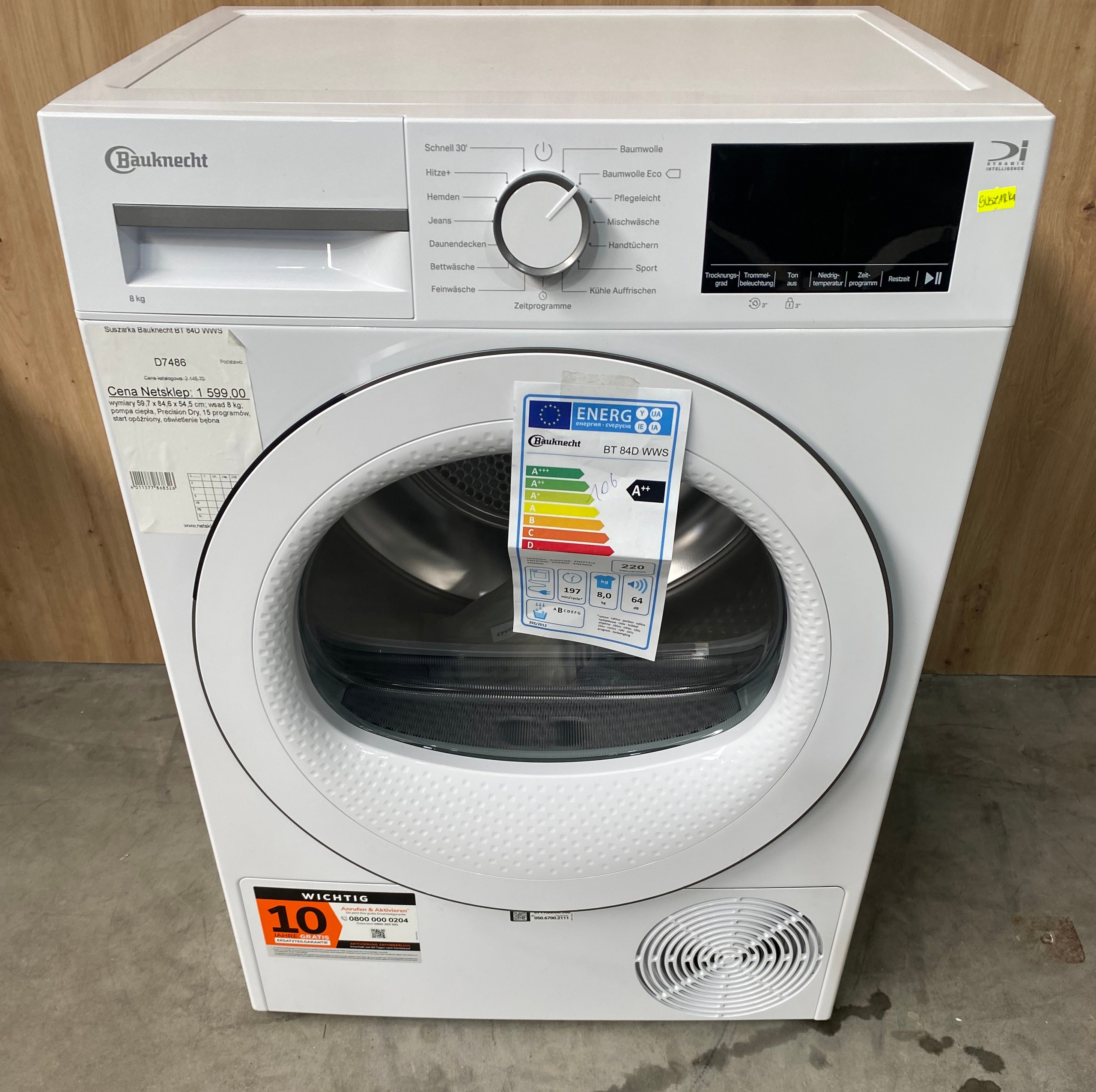 Suszarka z pompą ciepła Bauknecht BT 84D WWS | 8 kg | Oświetlenie bębna