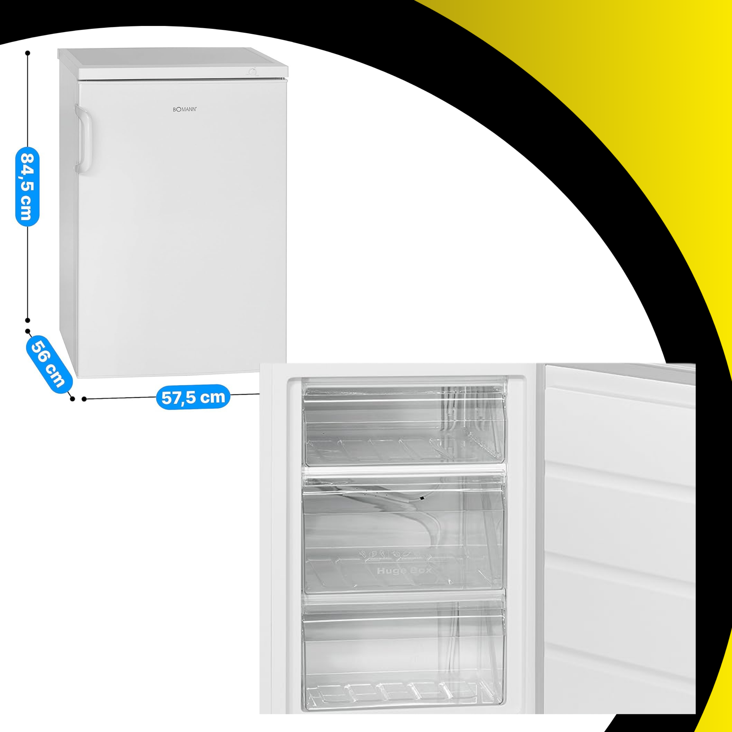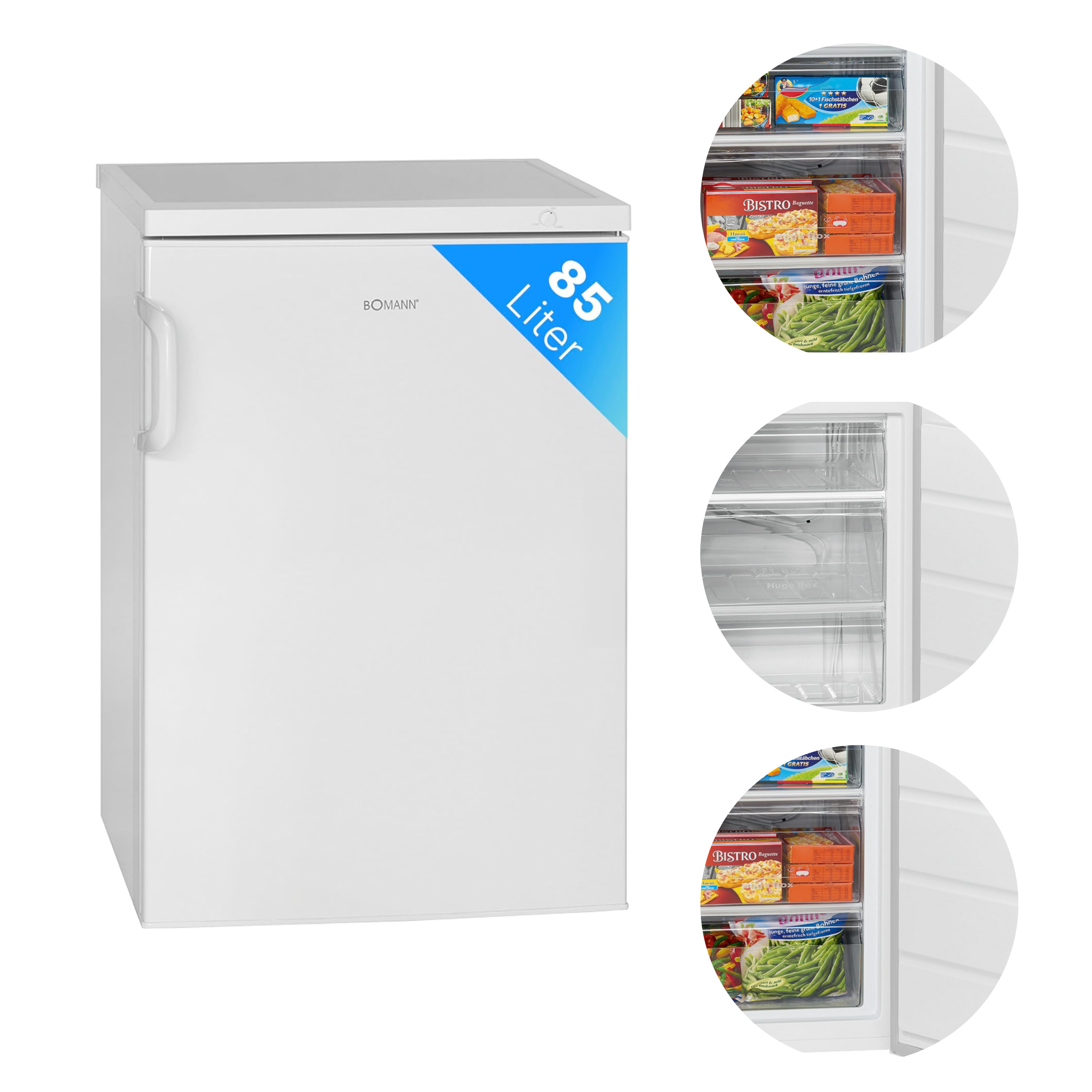 Zamrażarka pionowa Bomann GS 2196.1 to praktyczne i pojemne rozwiązanie do przechowywania mrożonek w domu, mieszkaniu lub zapleczu kuchennym. Dzięki pojemności 85 l oraz 3 szufladom umożliwia wygodną organizację produktów takich jak mięso, warzywa czy gotowe dania.