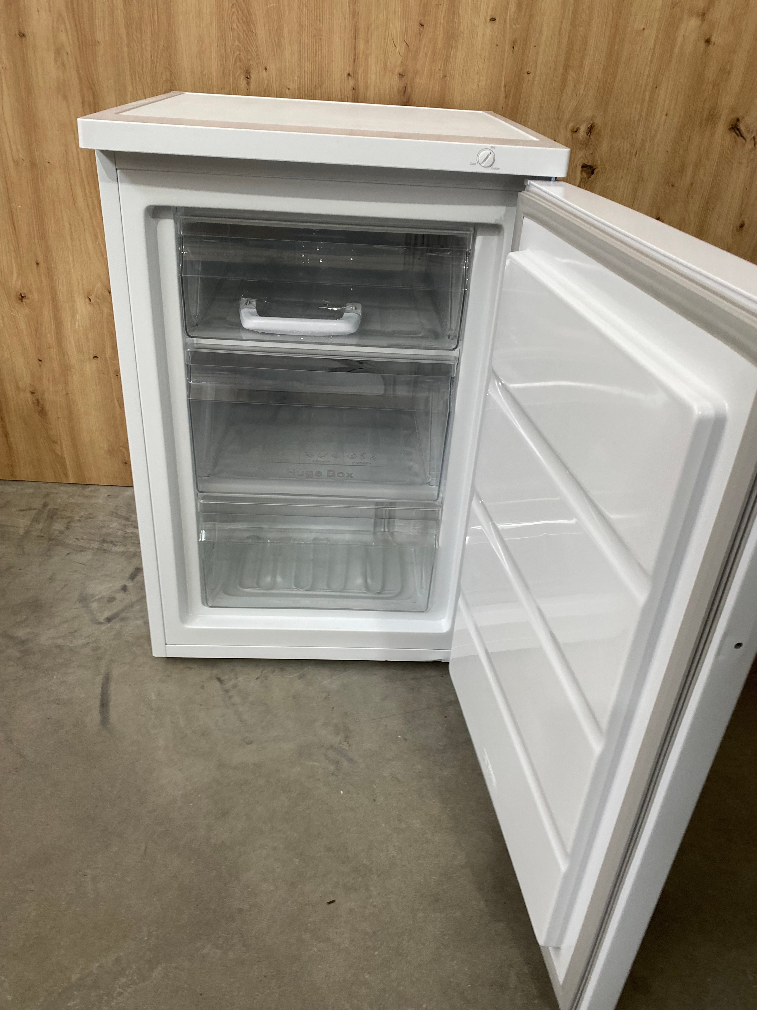 Kompaktowy rozmiar sprawia, że zamrażarka dobrze sprawdzi się w kuchni, spiżarni lub innym mniejszym pomieszczeniu.