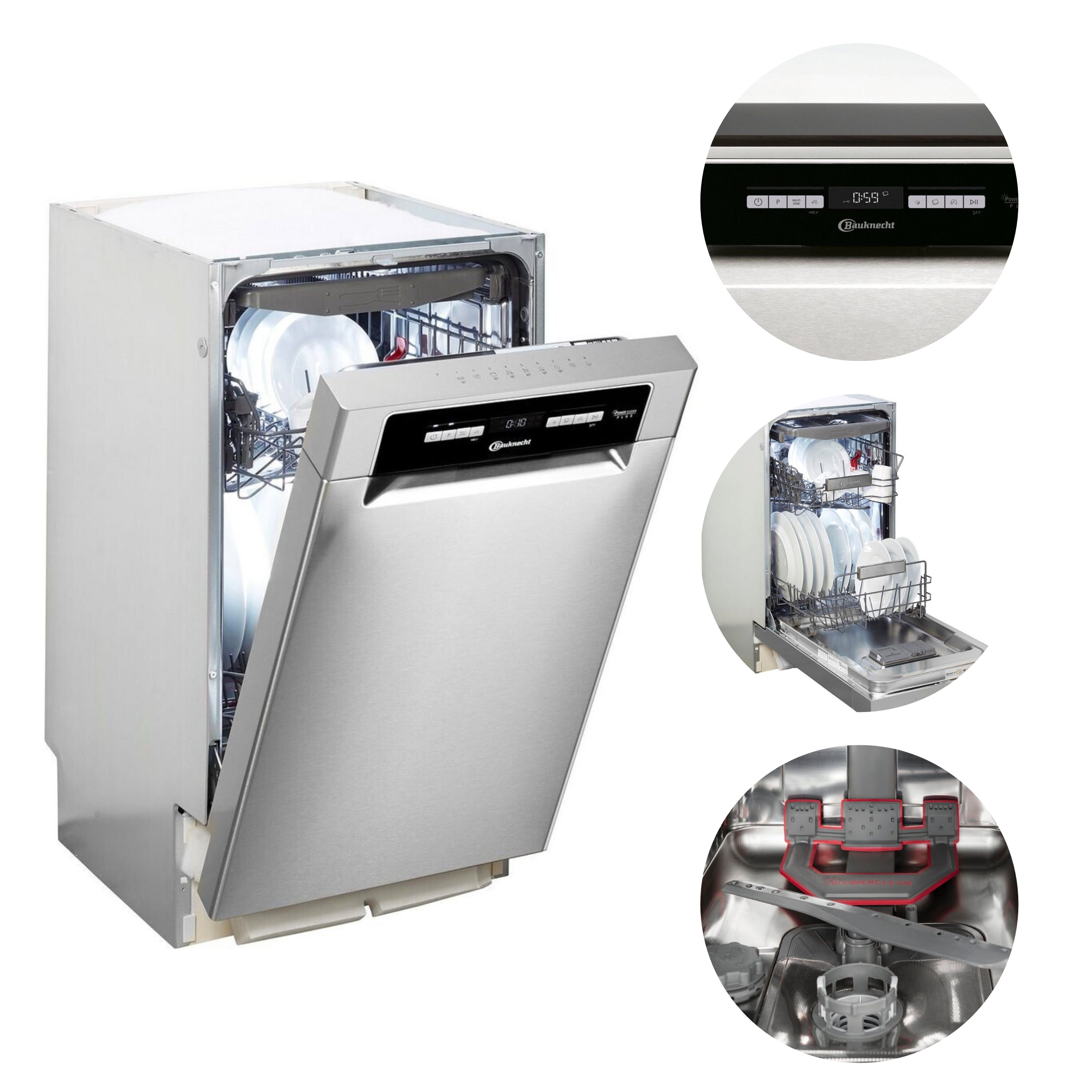 Zmywarka Bauknecht BSUO 3O21 PF | 45 cm | 41 dB | PowerClean | Inox