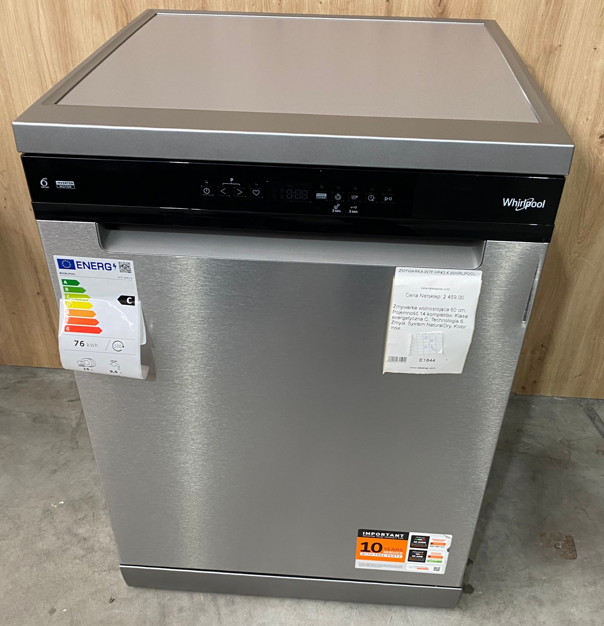 Zmywarka Whirlpool W7F HP43 X 15 kpl 60 cm Inox 6. Zmysł 43 dB E1844 /E